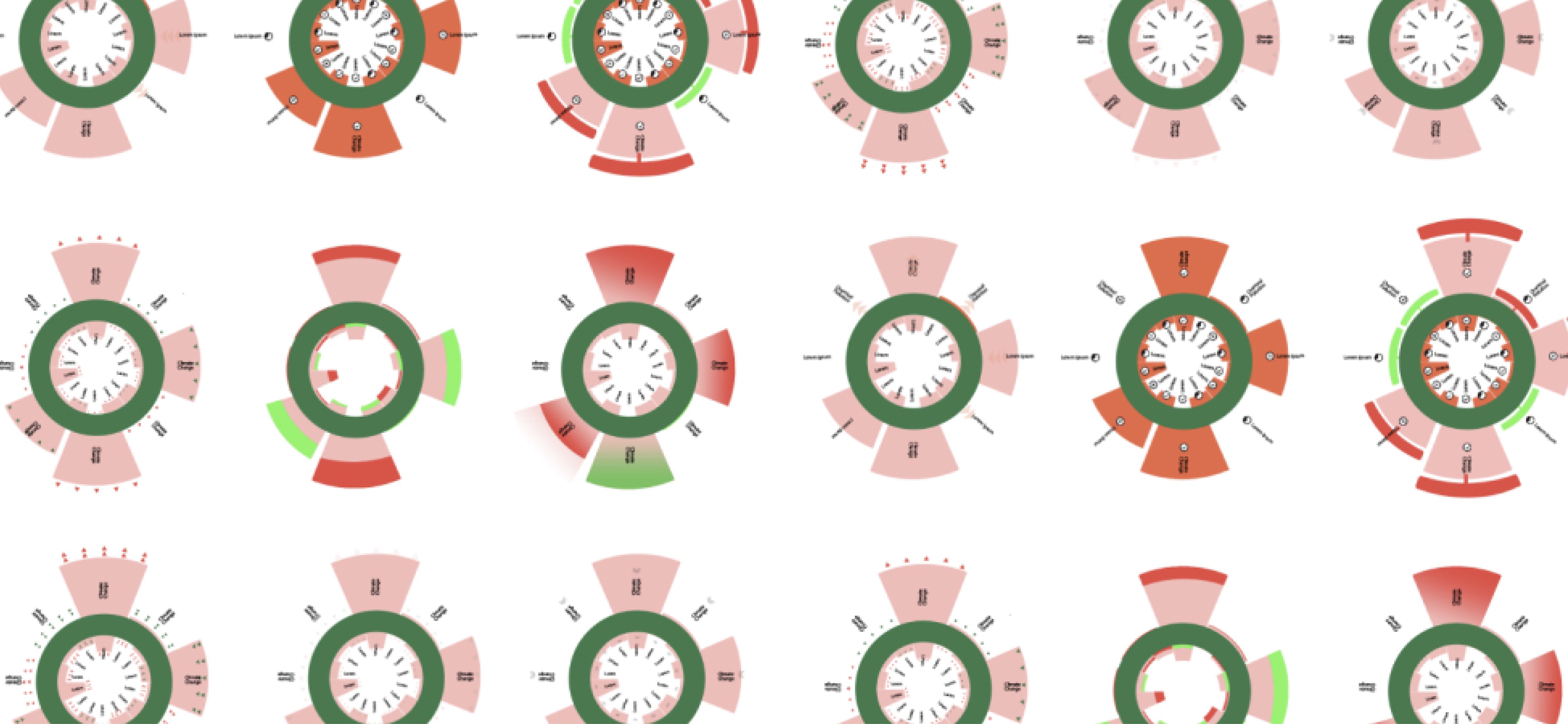 A two-ring visual system—outer for high-level categories, inner for specific indicators. By using bar length and color intensity, users can now instantly decode both the direction (improvement vs. decline) and the magnitude of the impact without reading a single number